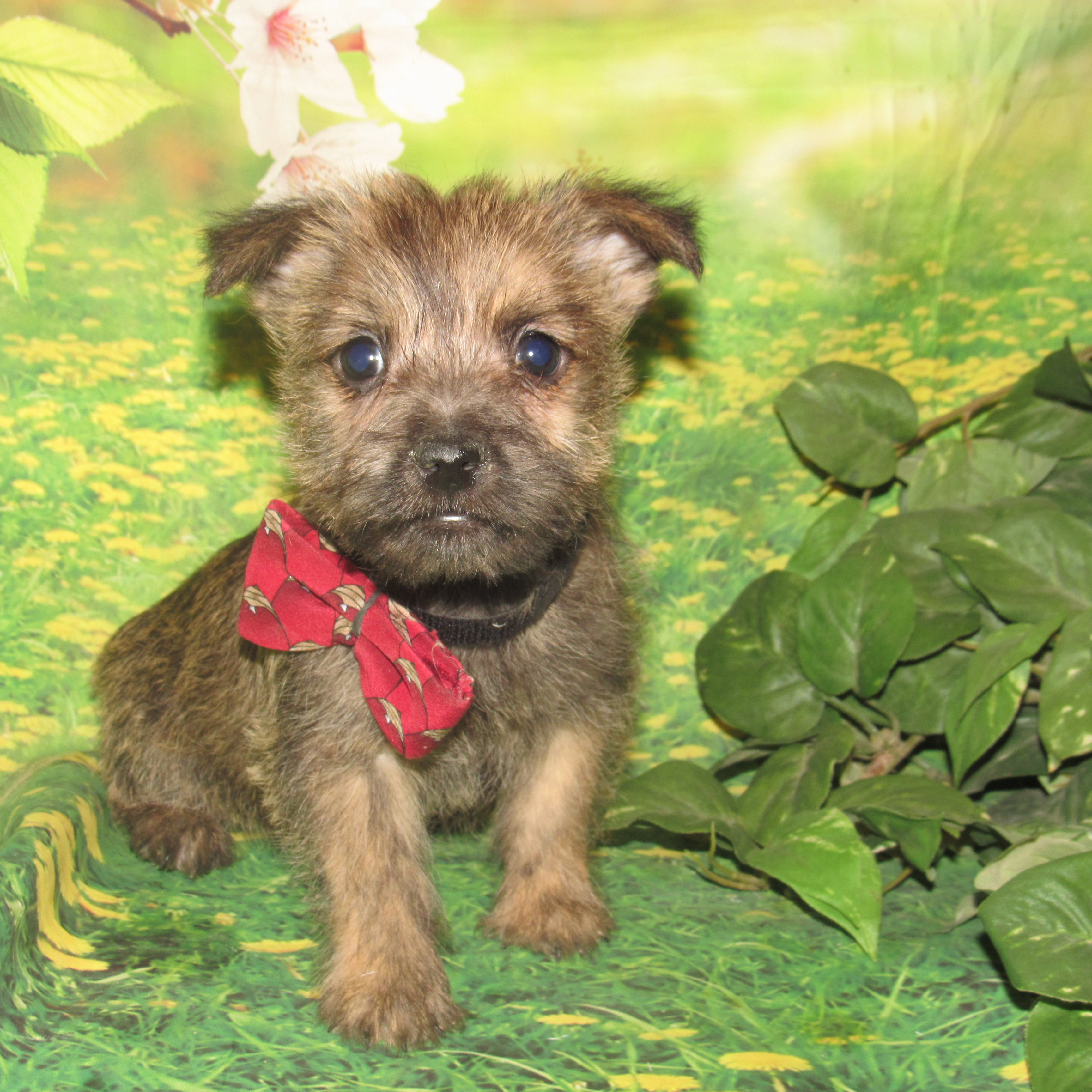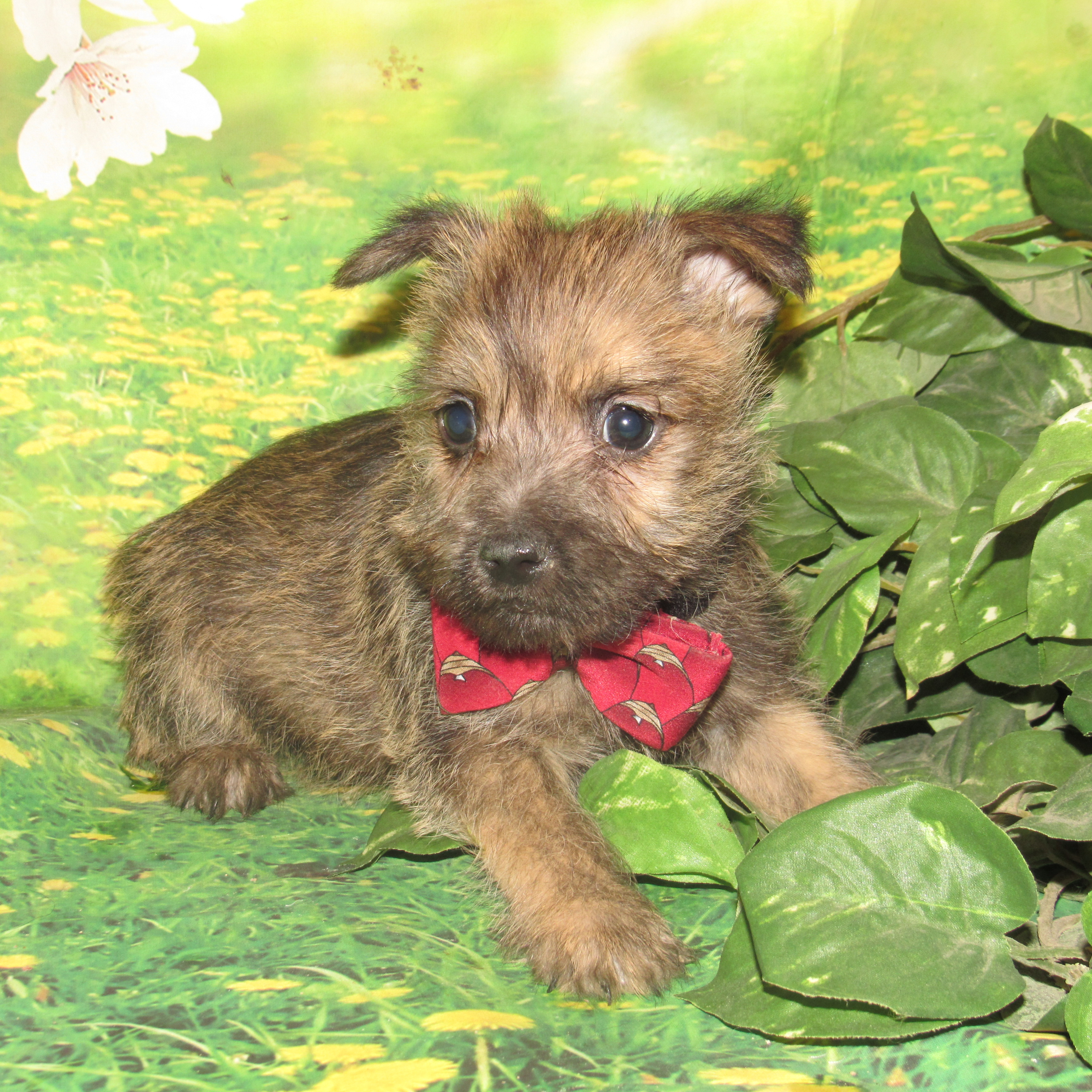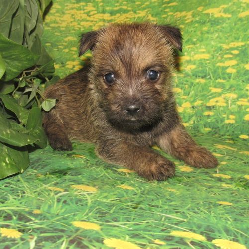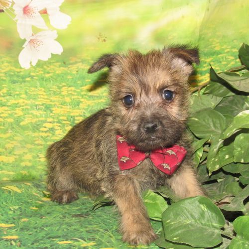 Introducing Alex, the most adorable Cairn you'll ever lay eyes on! This lively little pup will be bursting with personality and will keep you on your toes with his cute puppy antics. He will love to play fetch and is even clever enough to bring the toy back. Whether you're going on a hike or snuggling up for a nap, Alex is the perfect companion for all your adventures. With his striking brindle coat, he's sure to turn heads everywhere he goes. And with parents like Autumn and Dutch, who are both beloved family pets, Alex is sure to be just as wonderful. Don't forget to ask to see the fantastic videos of this little guy in action!