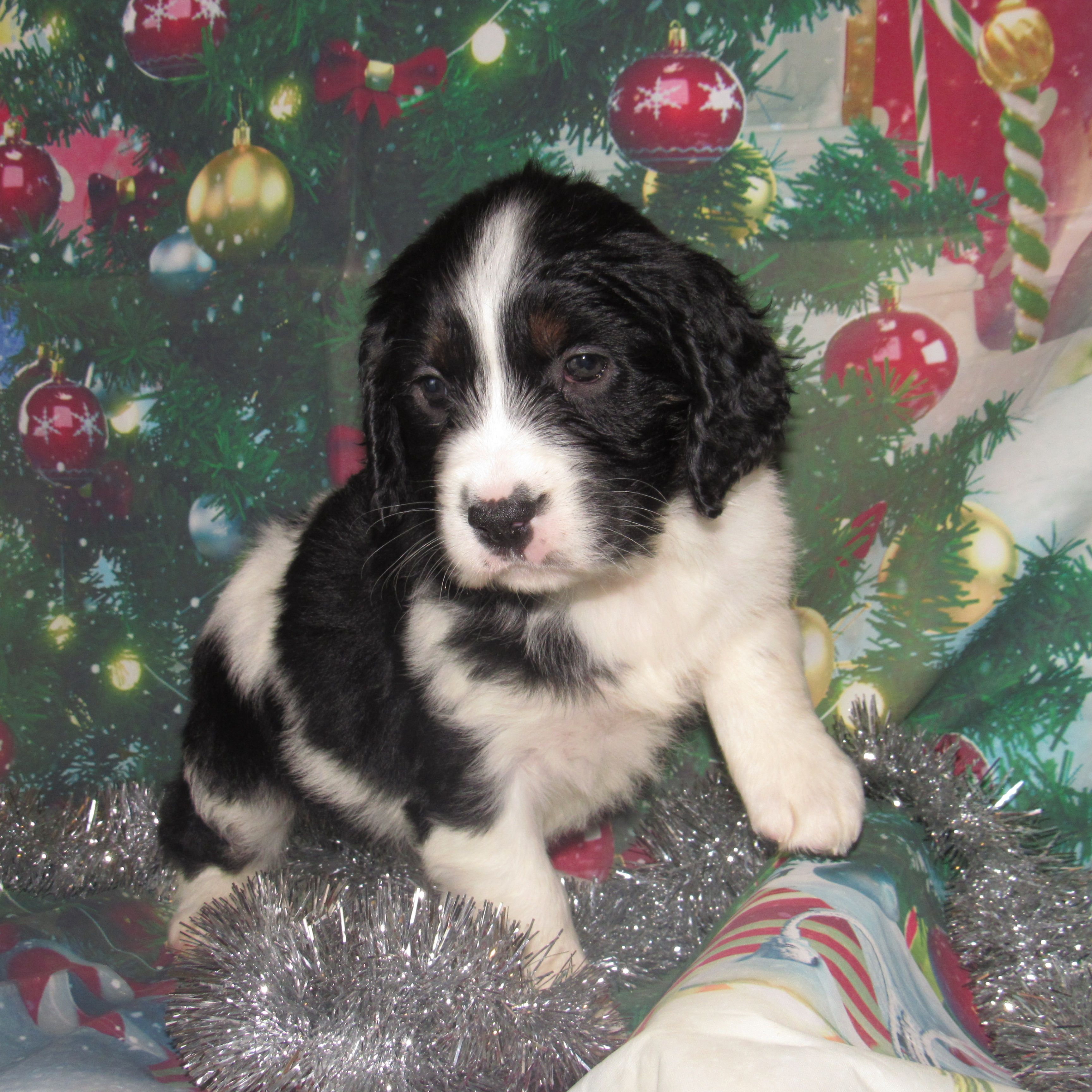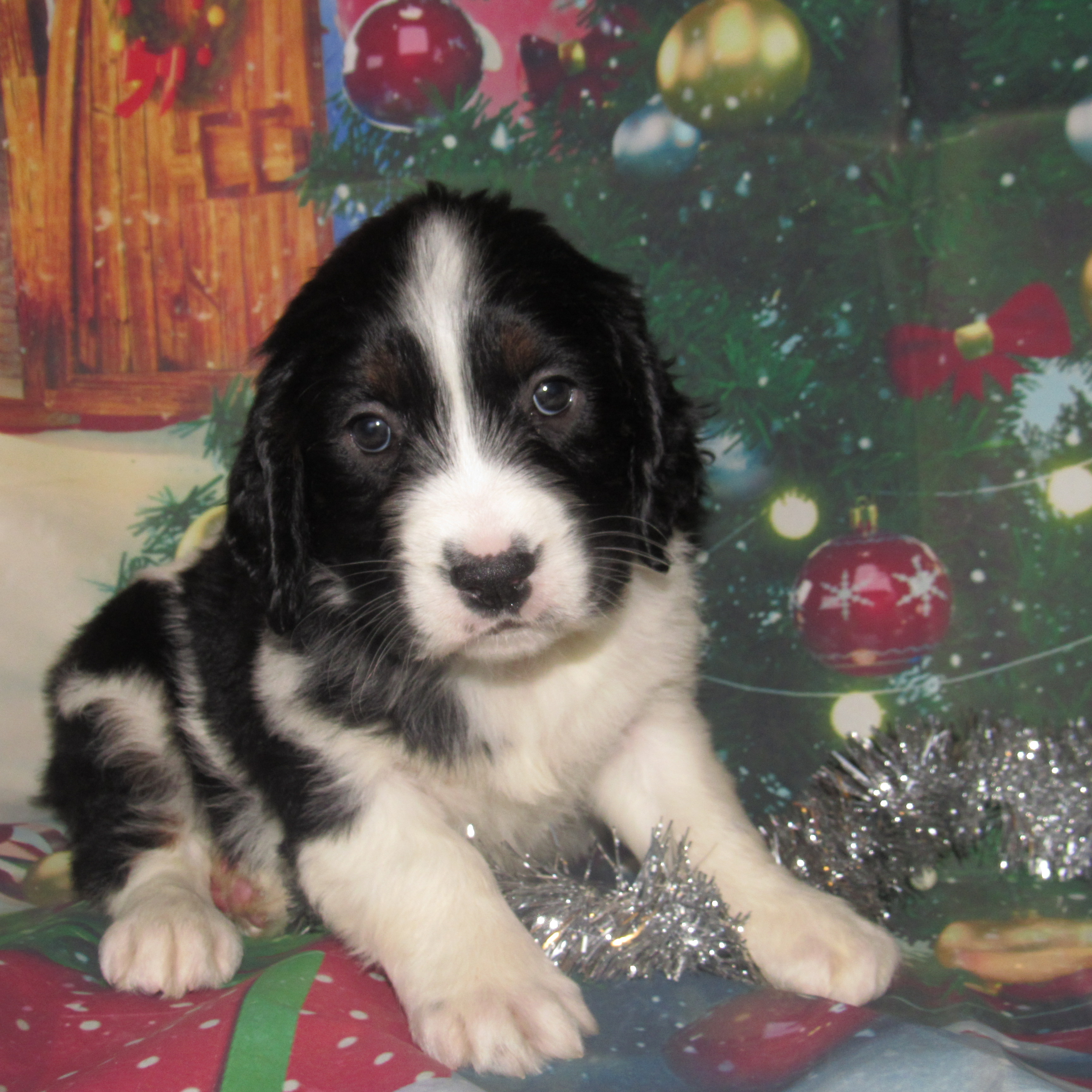 Audrey is going to be a very loving puppy and will do well in a variety of home environments. She will enjoy learning and should be very easy to train. She can be content relaxing or being on the go. She will love to give hugs and kisses! Her parents are Amelia and Winston, they are both fabulous family companions. She is so pretty with her black, white and tan coloring. Who can resist those eyes. Stay tuned for all the changes coming in he weeks ahead. She will travel to her new home with up to date vaccinations, wormings, health check, genetic guarantee, puppy care package and microchip. Please call for more information