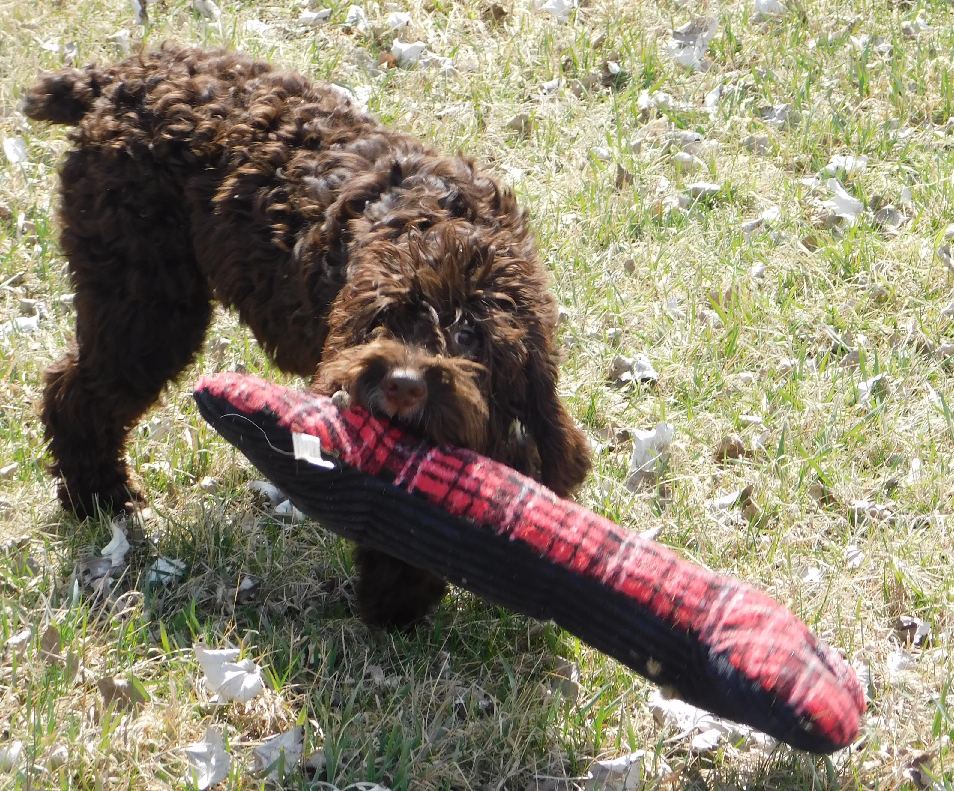 Introducing Avery, the most darling Springer doodle you'll ever meet! With his outgoing personality and playful puppy antics, he'll keep you on your toes and make you smile all day long. Avery will love to play fetch and will even bring the toy back to you! He's also the perfect nap buddy - just curl up with him and relax. But if you're looking for a companion for many adventures, look no further than this handsome guy. His handsome red gold coloring is irresistible, and he comes from a family of wonderful companions - his parents are Arabella and Chili. Don't miss out on the chance to meet Avery - ask to see some fabulous videos of him today!